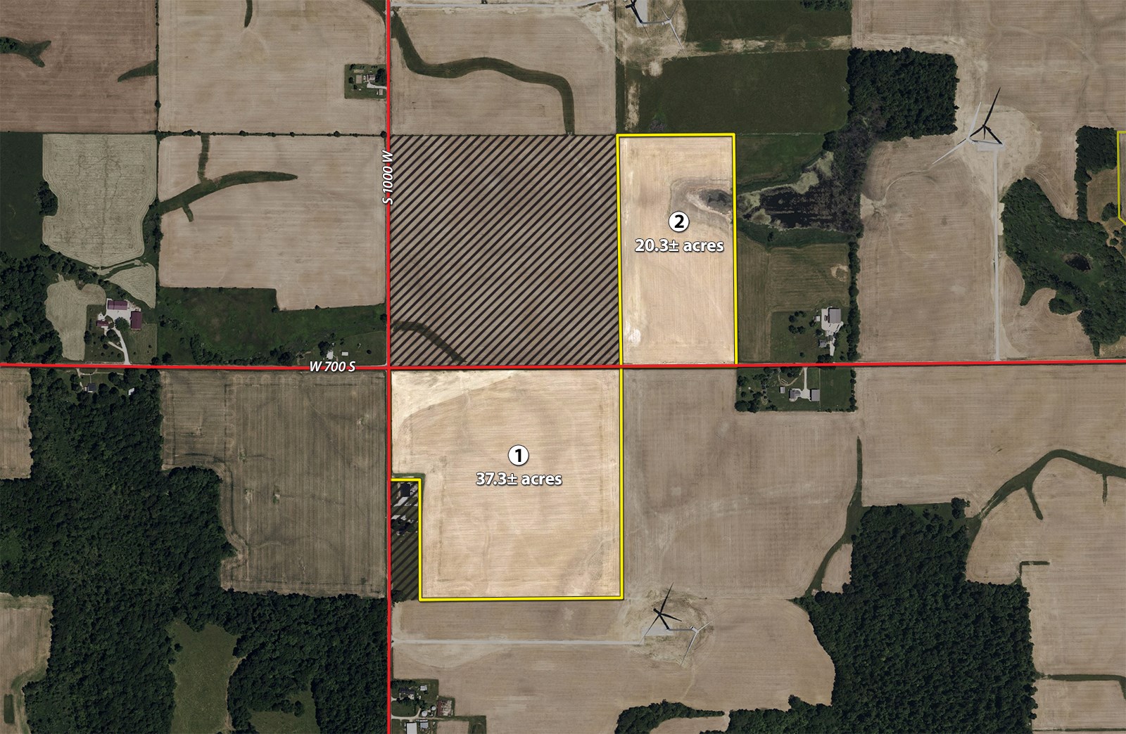 Tract 1: 37.3± ac Attractive all tillable tract with outstanding production potential. A strong combination of soil types, primarily Patton and Fincastle- Crosby soils, results in a Weighted Average Production Index of 156. Located at the corner of CR 700S and CR 1000W with frontage on both roads. This tract would make an exceptional addition for today's farm operations - don't miss this opportunity.