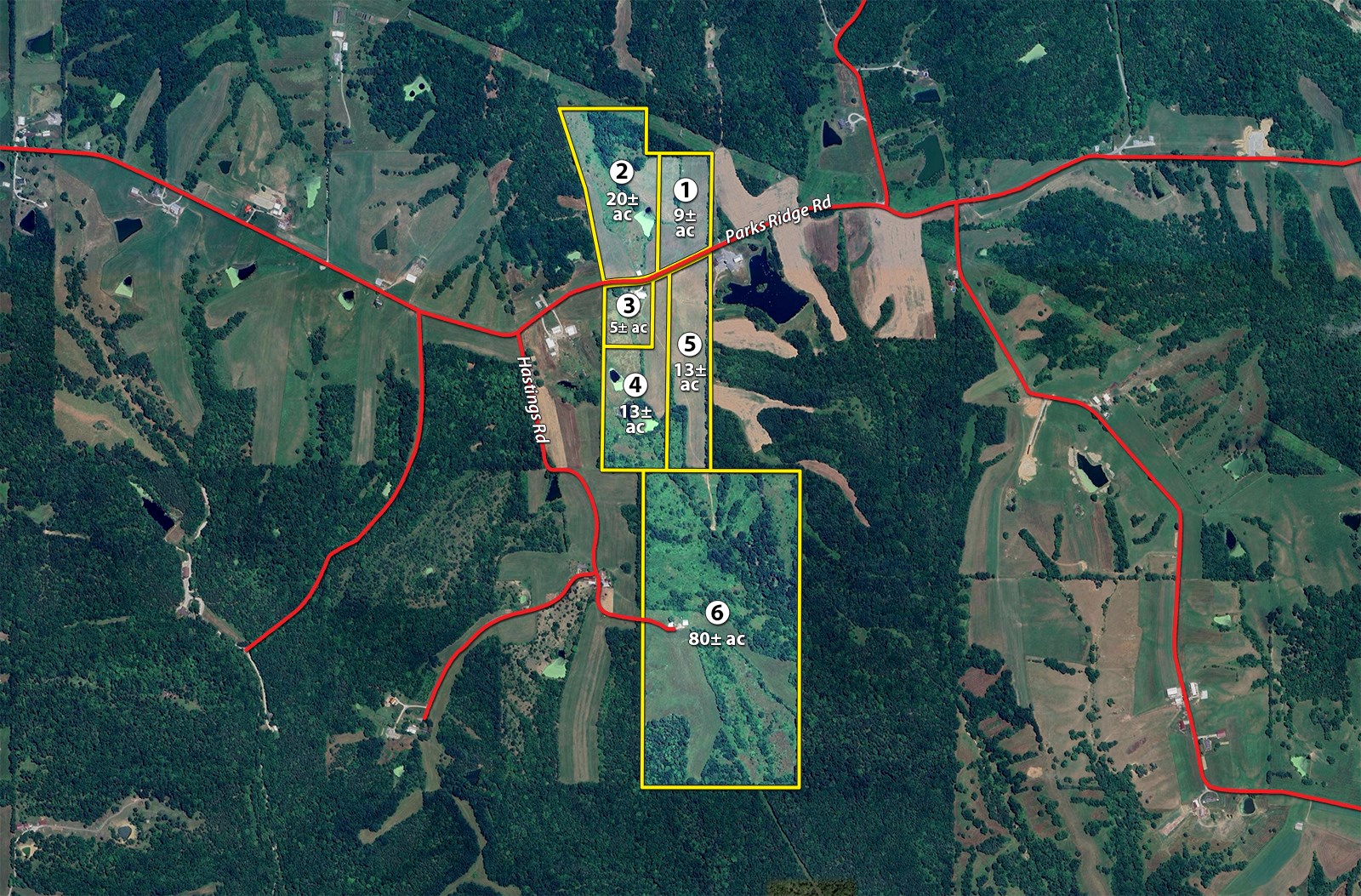Tract 1: 9± ac & Potential Building Site. With excellent road frontage on Parks Ridge Rd, this tract has potential cropland & pastureland. Municipal water is available to this tract through Patriot Municipal Utilities (new tap fee required ). The soil is a mix of Cincinnati silt loam & Eden silty clay loam. Consider the possibilities on this tract.