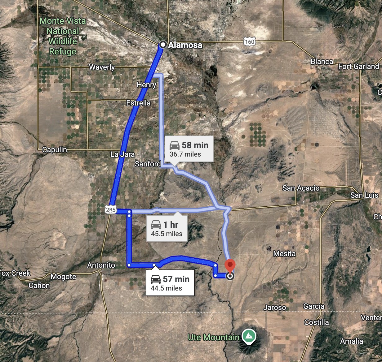 Take Co Rd 17, Co Rd G and Rd G to Cherokee in Costilla County