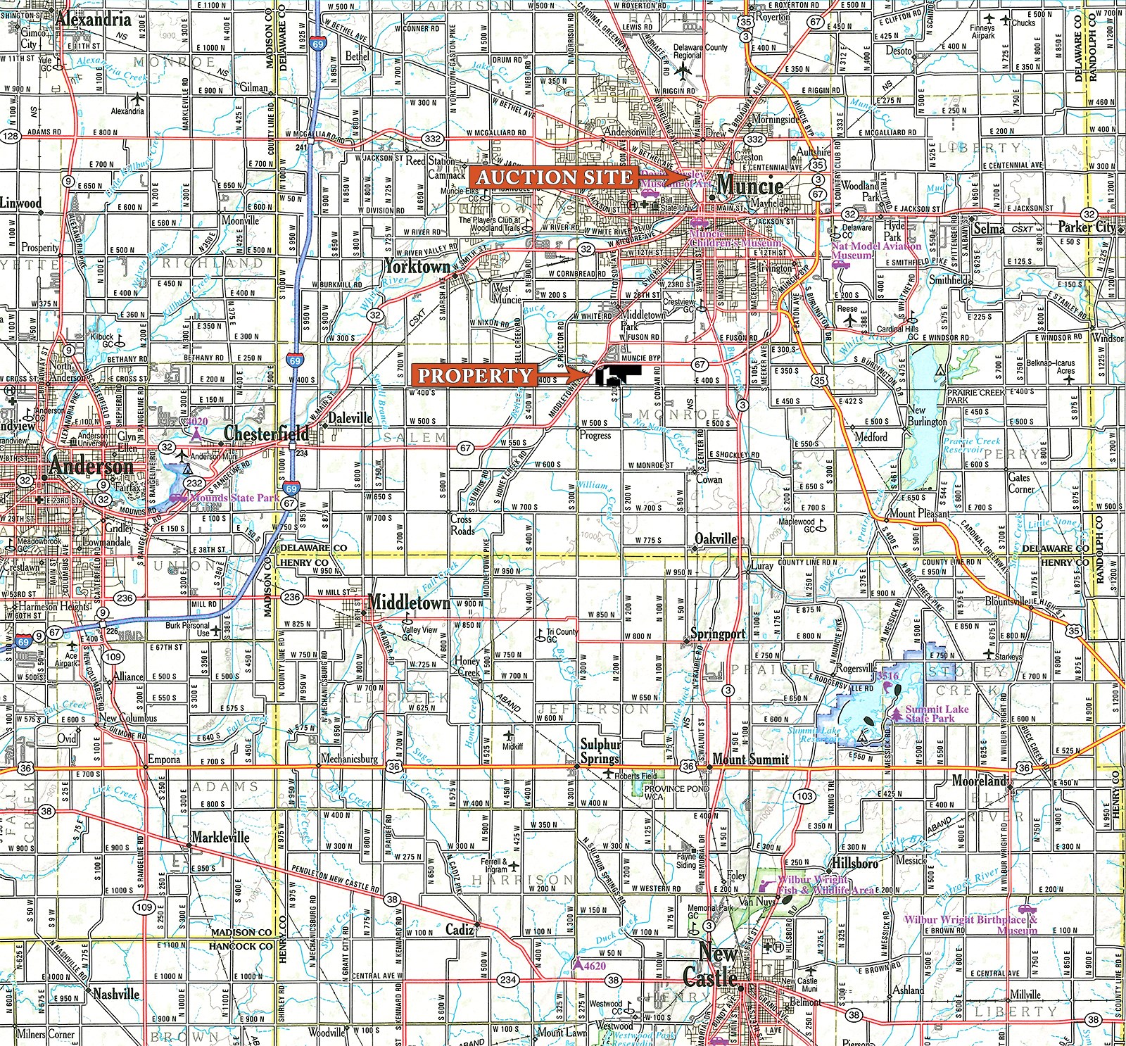 On the South & East sides of SR 67 at S 200 W & W 400 S, just South of Muncie and East of Anderson.