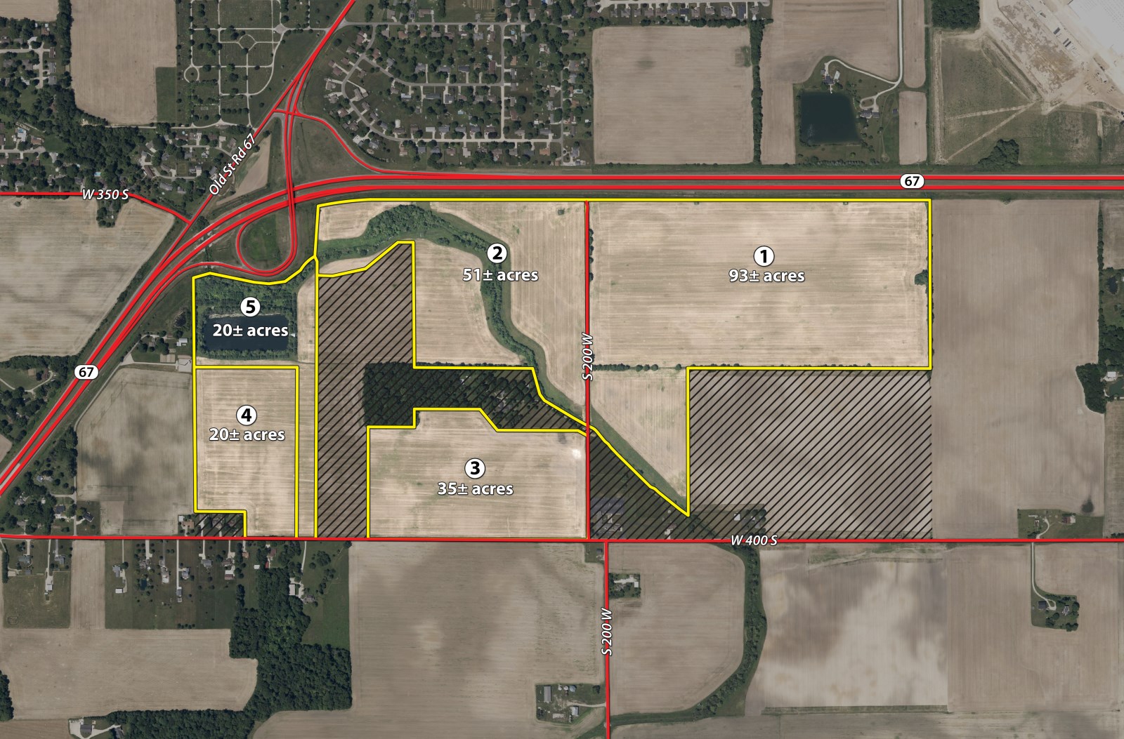 Tract 1: 93± ac 91.19 tillable and 1.72 ditch. 2.23 in CRP at $445/Acre. The North 1/2 of the Northeast 1/4 of Section 32 east of S 200 W and south of SR 67. Excellent productive farmland. CPI 162.2