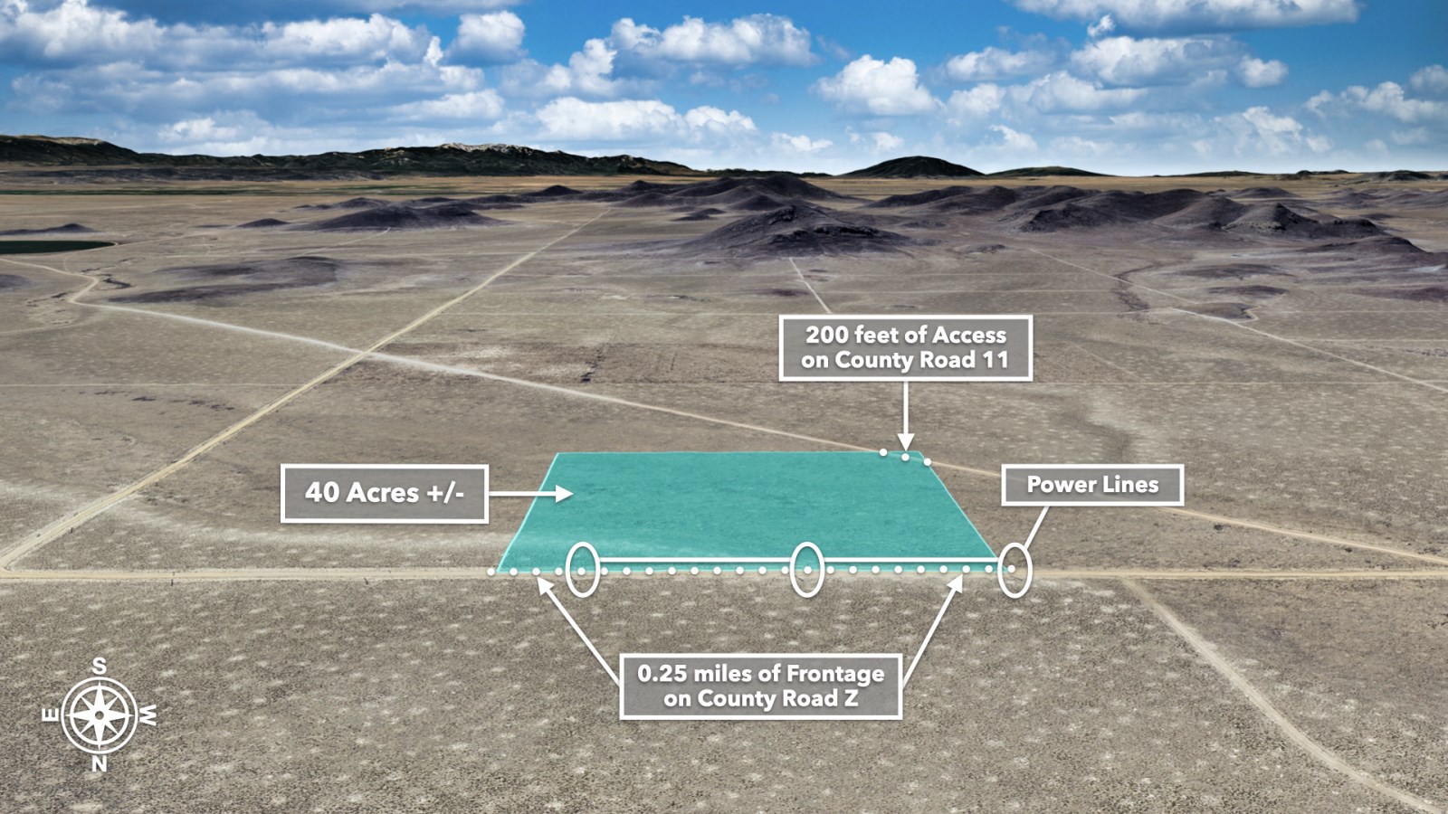 The property has great drive-up access, with County Road Z giving a 0.25 mile of road frontage along the entire North Boundary, while County Road 11 runs through the Southwest corner.