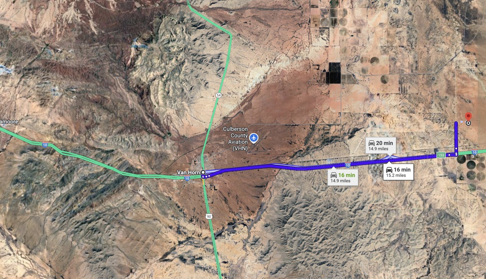 Follow I-10 E to Evergreen Rd in Culberson County. Take exit 153 from I-10 E