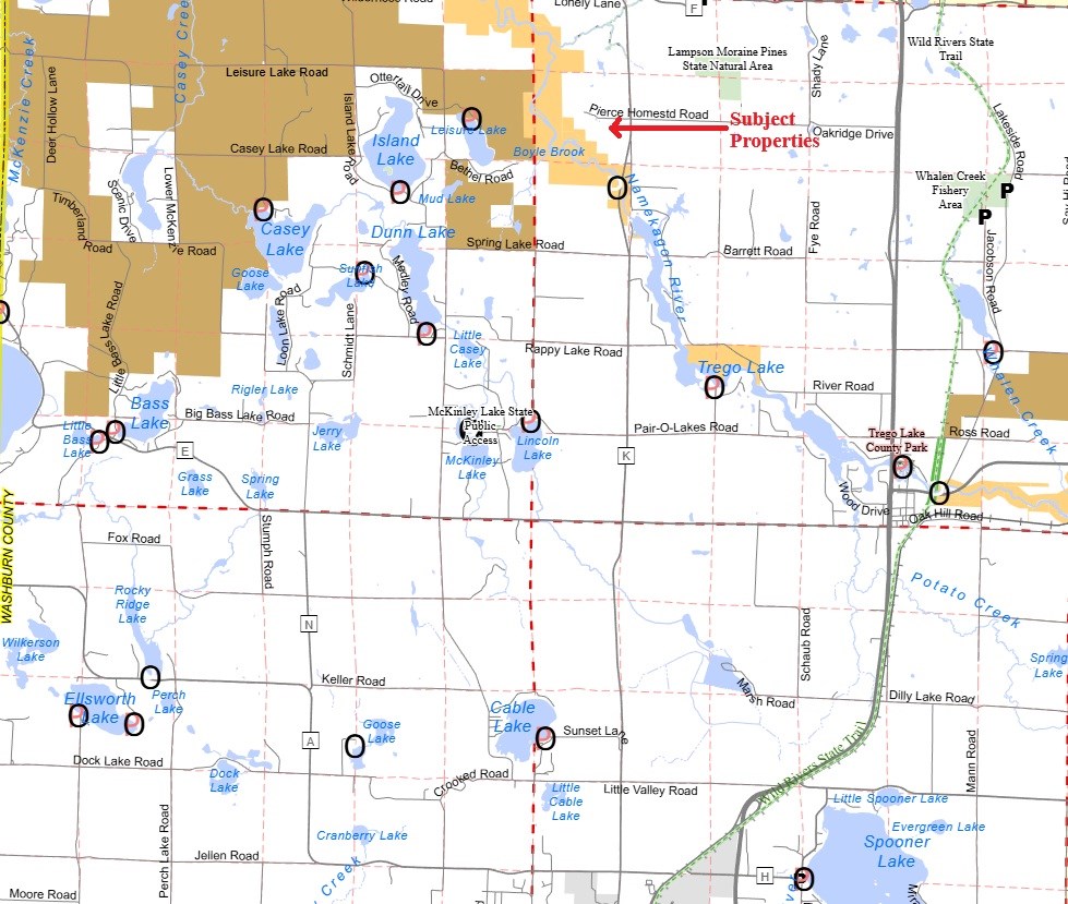 451-acre Trego Lake, 193-Acre Dunn Lake, and 276-Acre Island Lake are perfect for boating, fishing, and swimming, and these fantastic lakes are just a short drive from this Trego, WI wooded acreage for sale. This Washburn County property in Trego Township is truly ideal for enjoying the great outdoors. Several thousand acres of Federal Forest and Wisconsin State Forest are nearby, as well as, hundreds of miles of ATV and snowmobile trails that you can access from this secluded acreage. Everything that people love about getting away into northern Wisconsin can be found at your fingertips from this camper friendly property. Additionally, shopping and dining are nearby in Spooner and Hayward, and several areas in between.