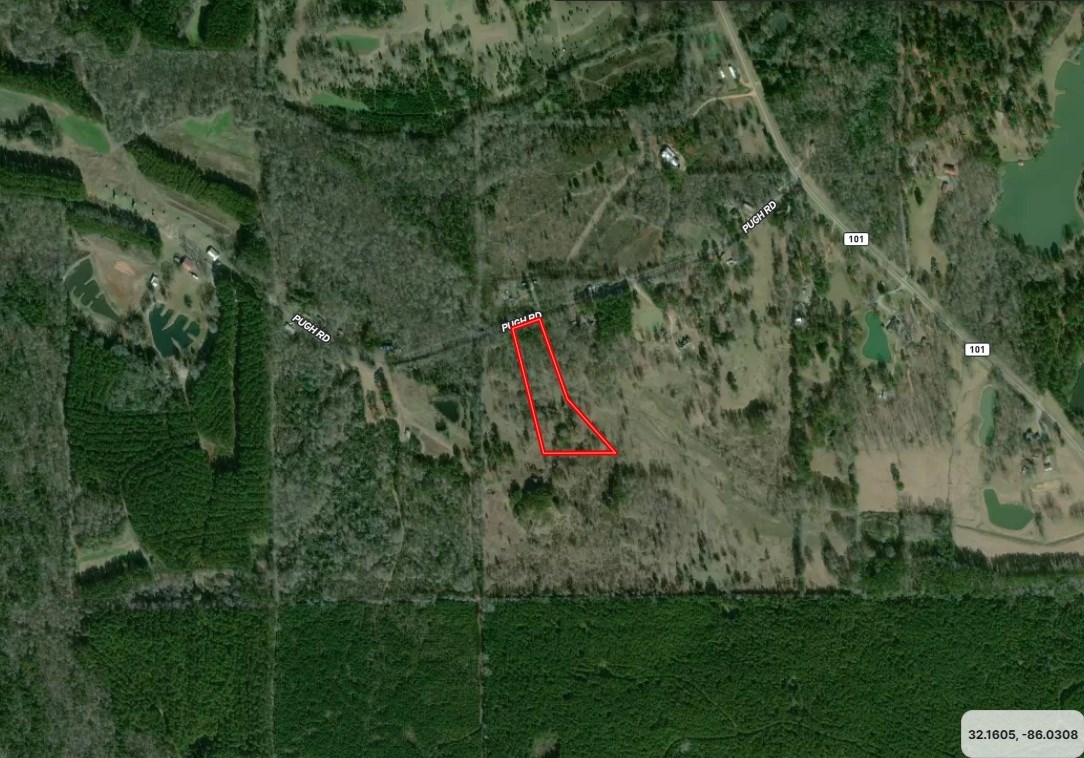 Take 85E out of Montgomery, Take Exit 9 and merge onto 271S/Taylor Rd toward US-231. Follow 82E to Carter Rd/Hayneville Ridge Rd (US-231). Stay on 231 / 82E until you get to Old Pike Rd. Take a right at Old Pike, go 1.8 miles, and take a right on Pugh Rd. Property road will be on your left in 0.4 miles.