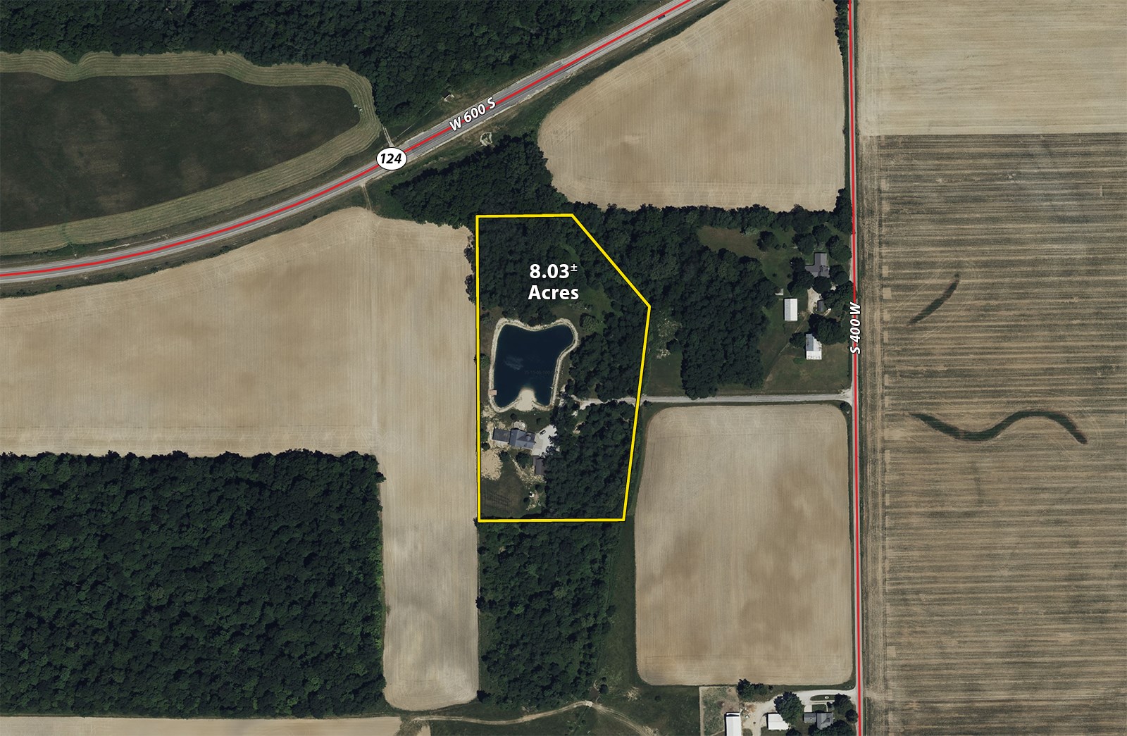Beautiful, Secluded Setting Southwest of Huntington. 8.03+/- Acres with Access from County Road 400 W. House is a 3,900 square foot, log home built in 2004.