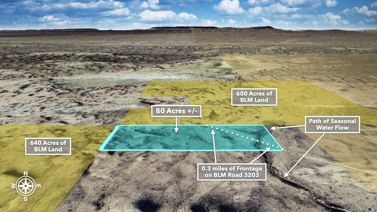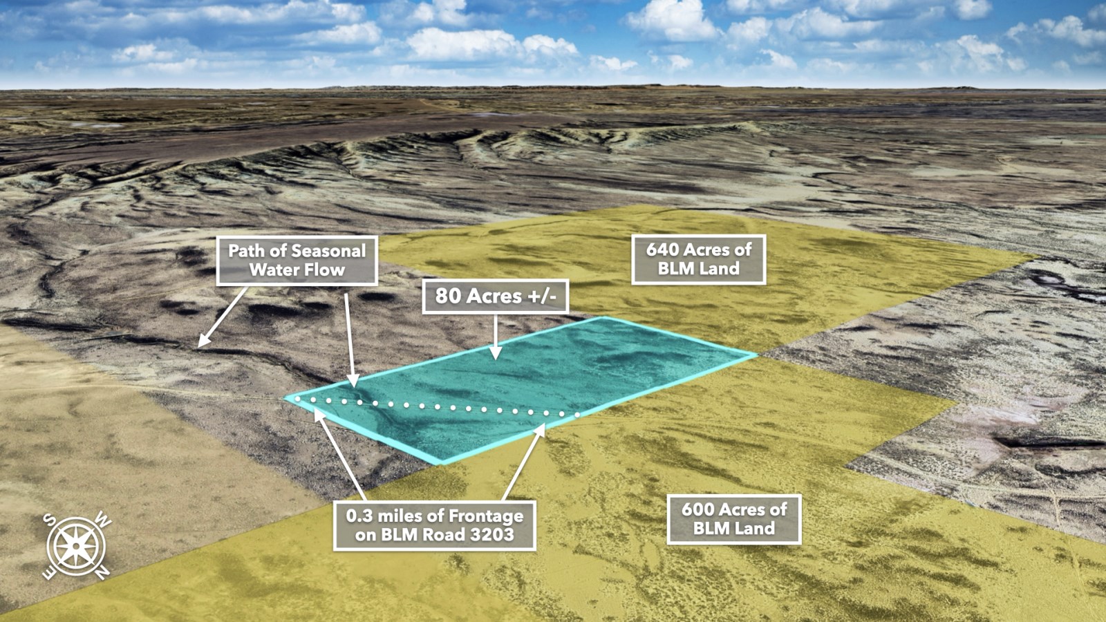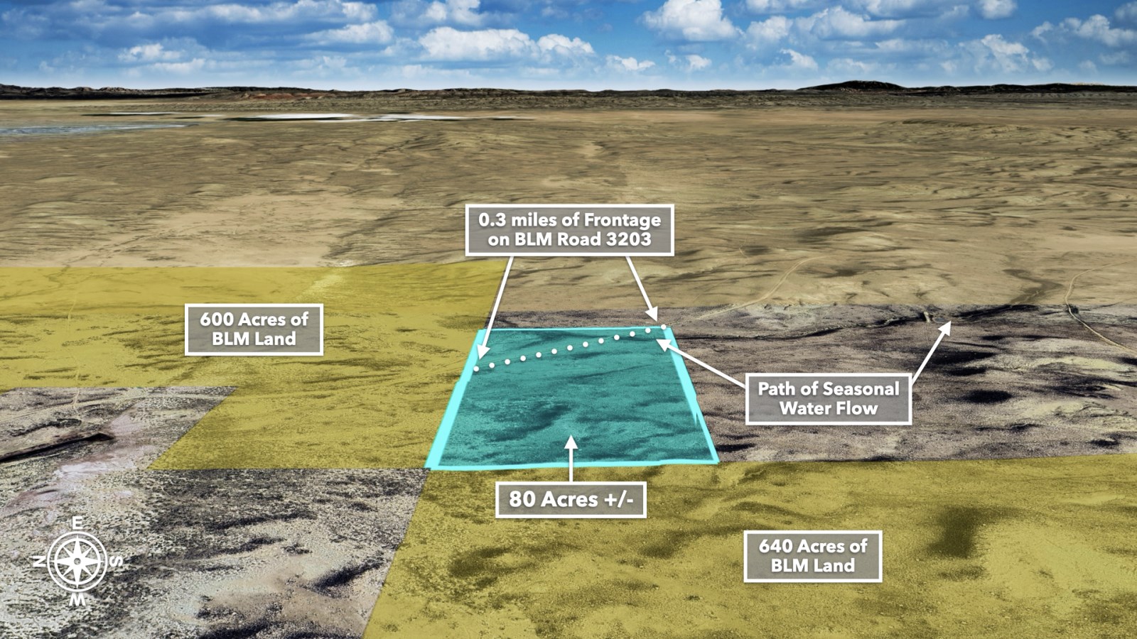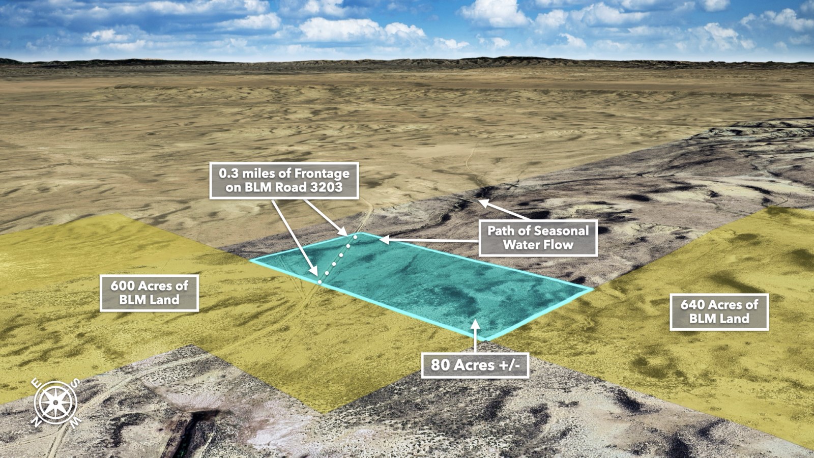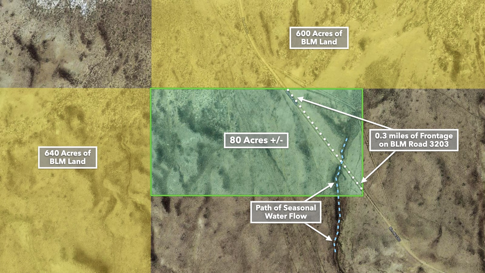 This property offers room to roam. A checkerboard of publicly-accessible BLM land surrounds this property in addition to contiguous BLM land to the north.